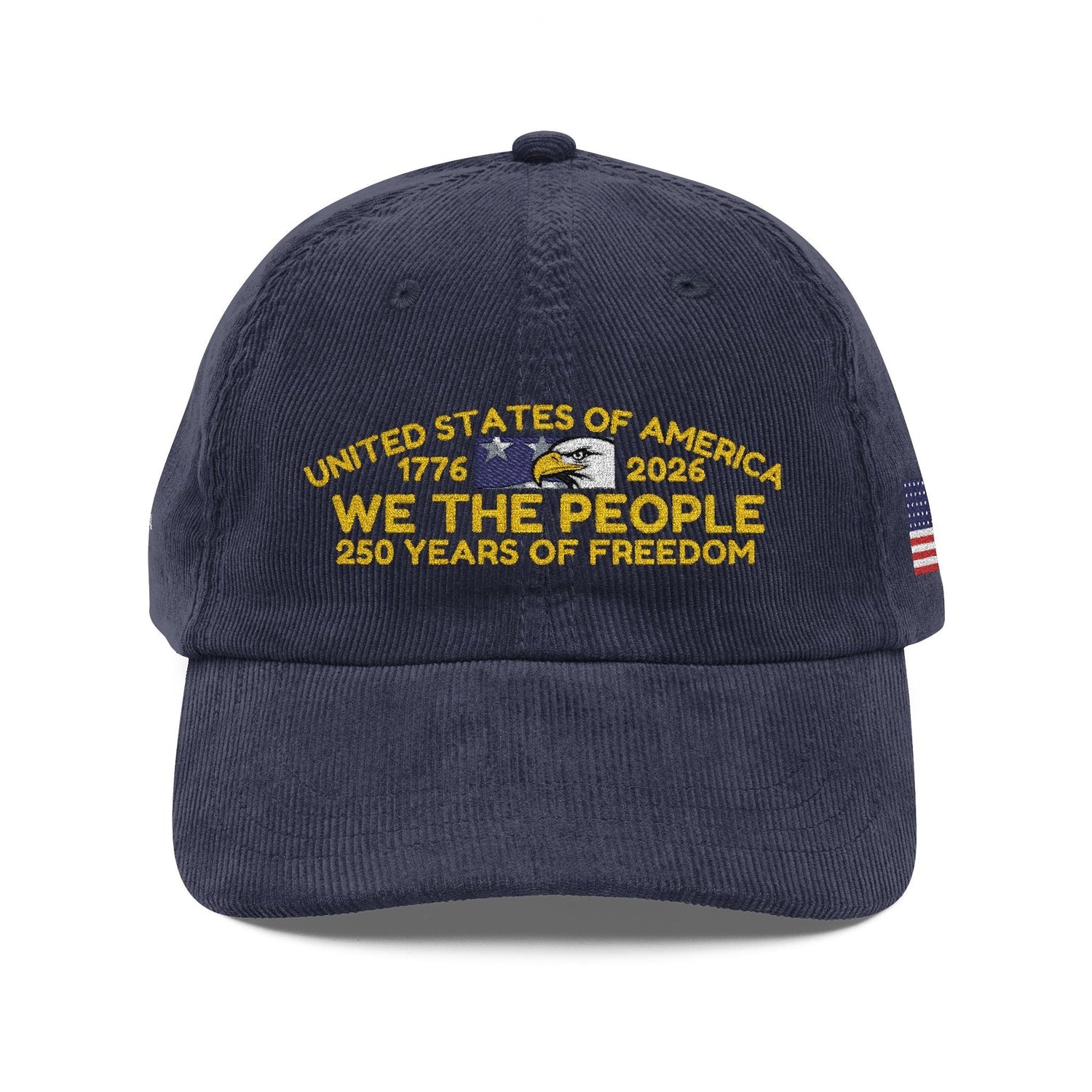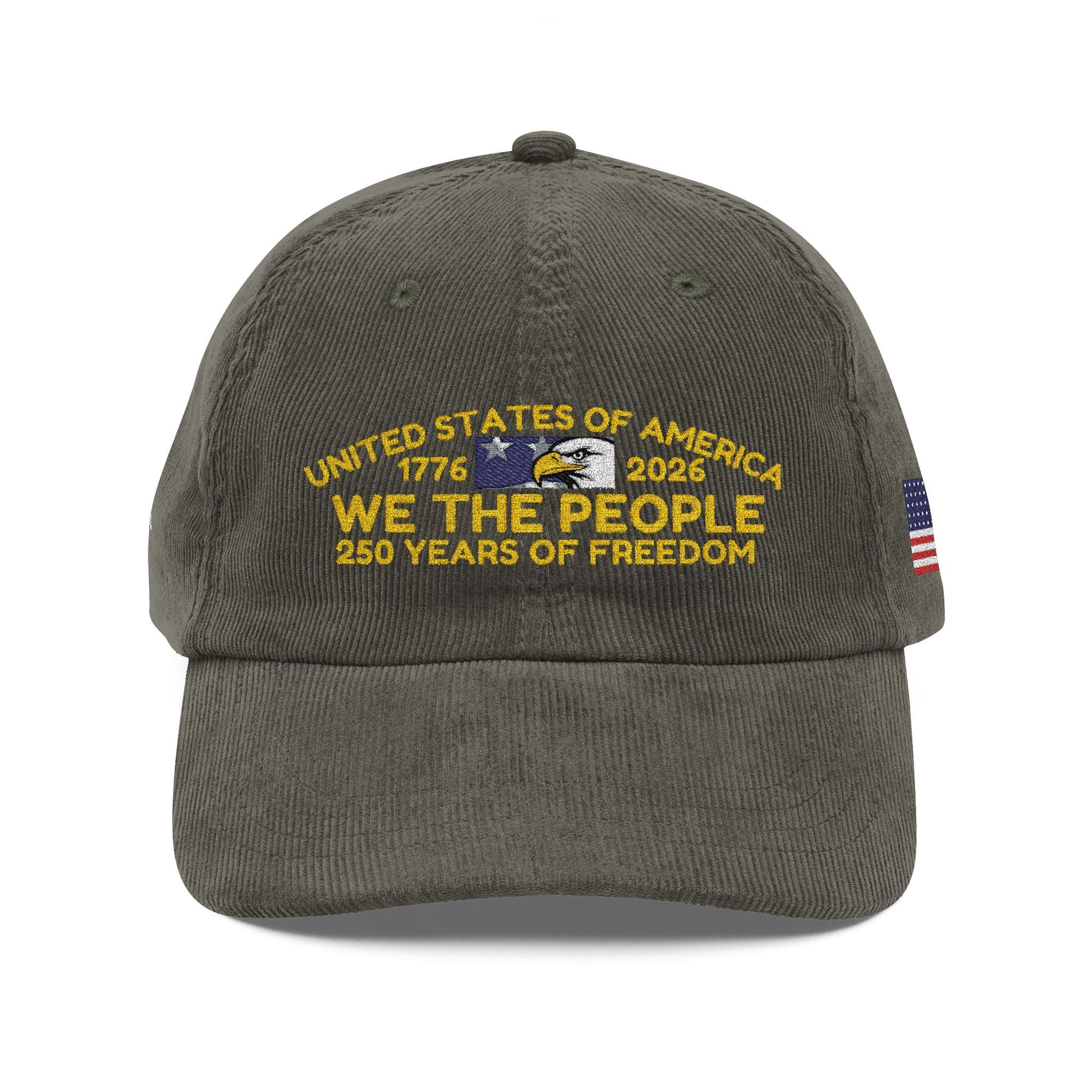 Limited-edition embroidered corduroy cap crafted to honor America’s 250th anniversary.